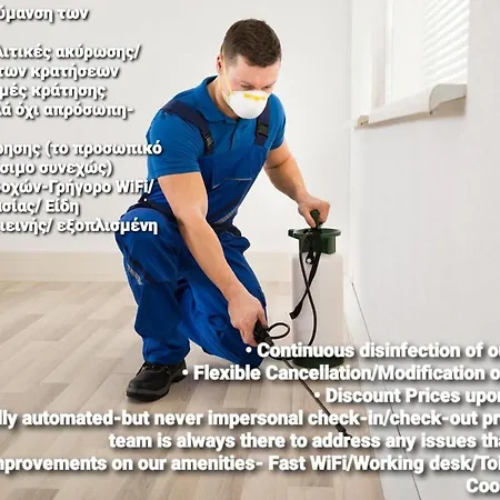 В апартаментах є повністю обладнана кухня з електрочайником, холодильником і духовкою, а також кавоваркою. Апартаменти розташовані лише за декілька хвилин ходьби від найближчої автобусної зупинки Lefkos Pyrgos.